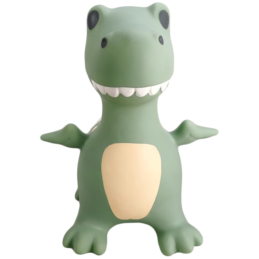 Most children love the classic jumping animal. The combination of its appealing appearance and the opportunity to use their bodies is something most children are drawn to. Jumping animals provide an active form of play where children can train their gross motor skills and vestibular sense. The latter is a sense important for all ages, as it helps maintain balance even in motion. Dexter the dinosaur is designed in a cheerful yet muted colour palette of sage green with soft yellow, white, and anthracite grey markings. Dexter has open eyes and can support a maximum weight of 50 kilograms.