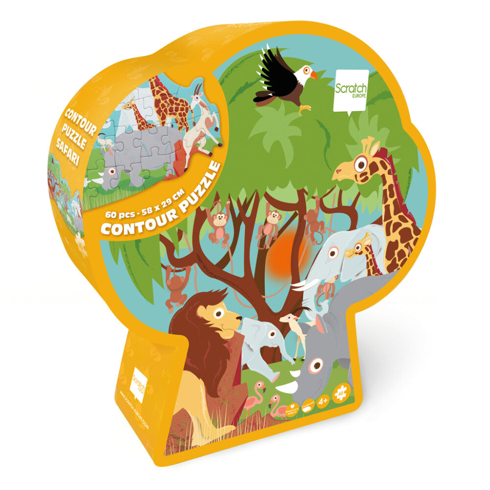 Scratch Puzzle 60pcs: CONTOUR PUZZLE/SAFARI 11,40 x 22,89 in, in contour box, 4+